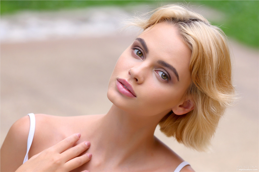 穿橘色简单造型的比基尼的白人美妞【13P】