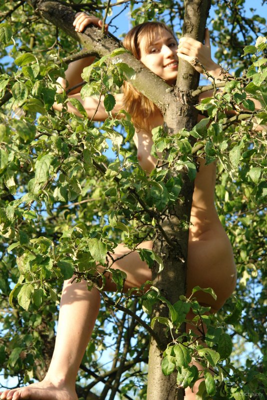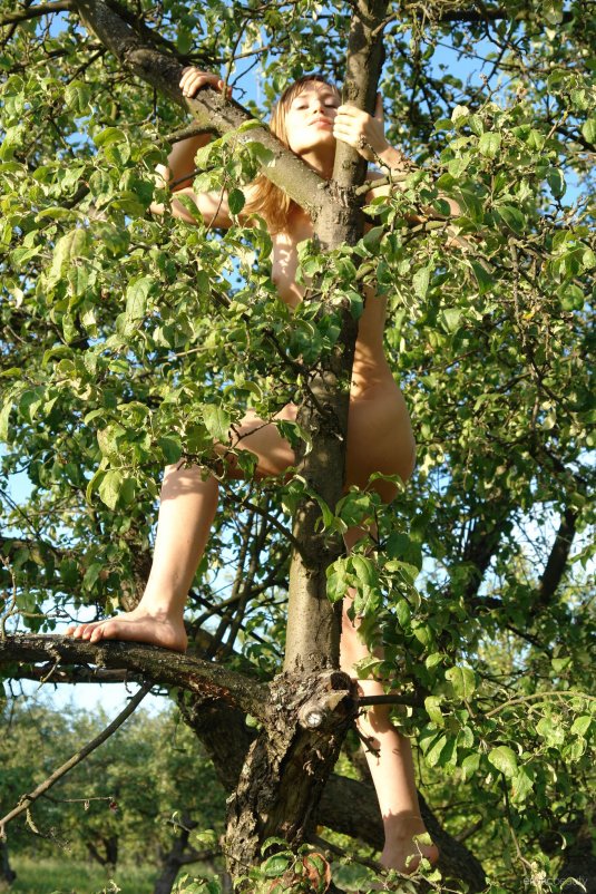 瘦乎乎的小妞上到树上没穿衣服肯定不怕走光啦【11P】